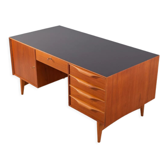 Pretty little vintage oak veneer desk Very good general condition despite some traces of time (see photos) Dimensions: H 75cm W 130cm H legs 61.5cm W legs 50cm D 60cm L left drawer 35.5cm.
