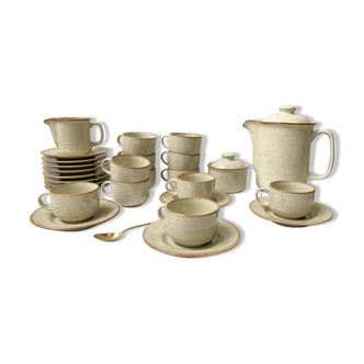 Coffee service in stoneware pierredefonds enamelled and stamped. It includes 4 cups and 4 sub-cups / saucers in pretty shades of beige and green of iridescent water. They are all impeccable and flawless. Cup diameter 10cm / height 5.5cm. Saucer diameter 14.5 cm / height all 7cm. Neat shipping.