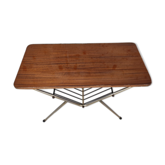Very pretty vintage corner harness, in golden metal and top in varnished oak wood veneer. Atypical design for this little nugget dating from the 50s.