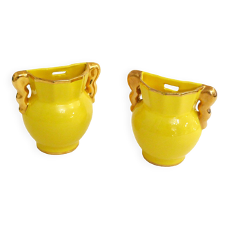 Antique Vase with Handles Yellow Ceramic Vintage Decoration #C605