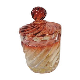 ✨️Baccarat bottle and pot in crystal, bamboo model, red XXth century. The pot is stamped Baccarat. ✨️The pot is engraved. 💥The cap of the bottle is broken, see photo 📷 Bottle height 16.5 cm / base diameter 6 cm. Pot height 12 cm / diameter 7 cm. Weight 1 kg.