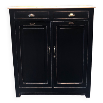 Cream-colored Parisian sideboard, one hinged door and one drawer that slides well. Raw wood top surrounded by a metal hoop. Dimensions: Height: 101 cm. Width: 70 cm. Depth: 40 cm. Do not hesitate if you have any questions!.