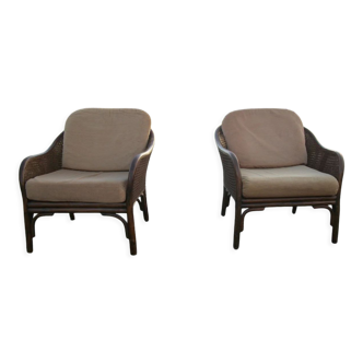 Lloyd loom chair. The lloyd loom looks like rattan but it is not. It is a more sophisticated technique of paper wrapped on a wire invented in 1917 by the american. Marshal burns lloyd. The seat of the chair had been redone in a damasked tick. The painting is original, which the photo fails to render in its reality, it is a beautiful powdered pink with a golden border on the ridge as is often seen in lloyd loom.