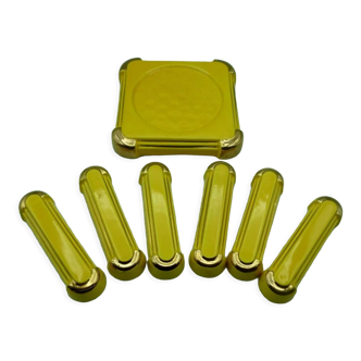 Flat rest, bottle coasters and Art Deco knife holders