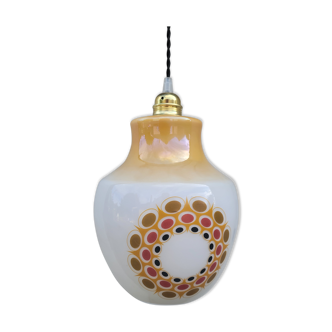 Glass pendant light from the 70s/80s black cable hook globe spring height 30cm diameter at the bottom 24cm traces of use.