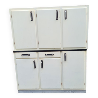 So vintage! Blue green formica furniture. Good condition, to note just an impact on one of the doors, see photo. The interior was lined with too cute floral paper. Location probably for bread! I had bought it as a bathroom furniture but the dimensions do not suit me... Size. Length 95cm. Height 180cm. Depth 40cm.