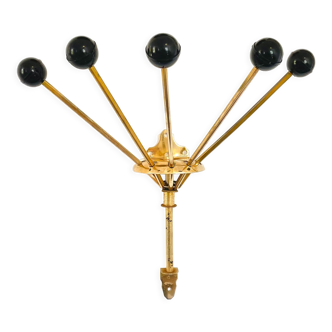 1960s coat rack. Chrome-plated metal frame with 8 black wooden hooks. In excellent condition.