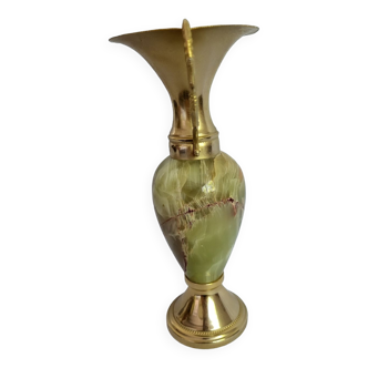 Beautiful vase in gilded metal and fine ceramic. It measures approximately 26.5 cm high, the neck measures 11.5 cm in diameter, and the base measures 9.5 cm in diameter. Original, and delicate. It is completely patinated by time, but remains charming and decorative.