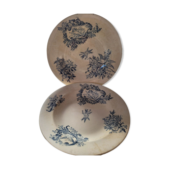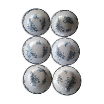 Lot of 6 hollow plates in iron land, linotte model dating from the 30s and 40s. Flower and green bird décor on a beige background. That's a good state. Two lots of 6 available.