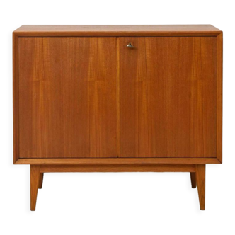 Teak chest of drawers from the 'Idee Möbel Programm' by Erich Stratmann for the Oldenburger Werkstätten - Germany, 1960s. Body made of teak veneer (on solid wood blockboard). Inside with a variable shelf. Good condition, with only a few age-appropriate signs of use (see photos). The legs were mounted afterwards. Dimensions: Height: 85.5 cm / Width: 109 cm / Depth: 34 cm.
