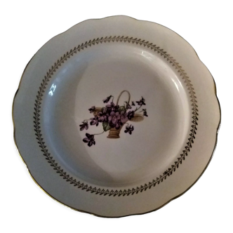 Serving dish in earthenware herbarium model, viola odorata mill of wolves orchies france vintage