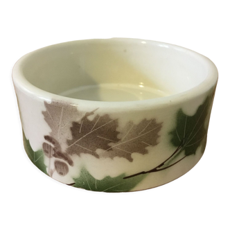 Set of 4 cream-coloured deep plates in earthenware with an ochre red plane tree leaf design. Good condition.