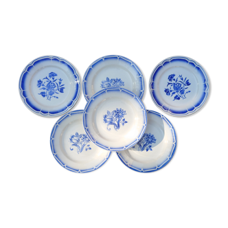 6 flat plates in earthenware, in excellent condition. The central motif is a charming bouquet of pinkish-red roses. Nice to set up a beautiful festive table.