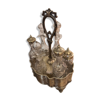 Silver metal salt cellar set.