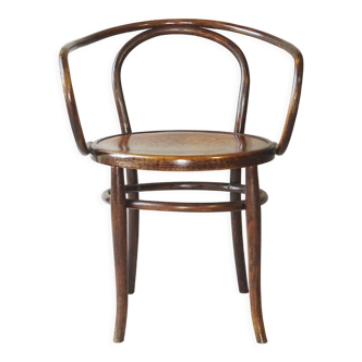 Adorable bentwood chair on the iconic b9 thonet model known as "le corbusier". Manufactured at the beginning of the 20th century. Its soft honey color will allow it to find its place in any interior style. A rare piece, there have been some regluings, well done, the whole is very stable, healthy, and in good condition. Dimensions: h 37 / w 41 / d 32 / seat h 21 cm.