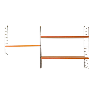 Vintage tomado shelf dating from the 70s. Matte black metal structure and two coral red metal shelves. Good condition, some signs of wear. Signed tomado holland.