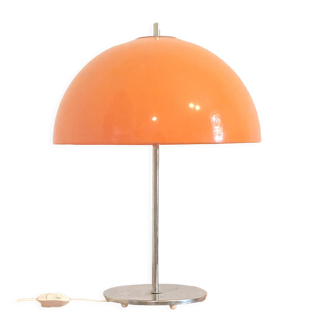 Pretty mushroom lamp of the 1970s in the taste of verner panton with its white tulip foot in abs and its lampshade in orange perplex, it is in good condition, some tiny traces of use and antiquity. It will bring a vintage touch and a warm note thanks to its colors both in your living room, in your bedroom, or even in your office. Height 40 diameter 30.