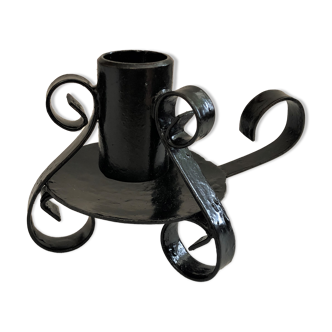 A brass candlestick produced by Ystad Metall in the 1960s, characterized by a base composed of four scrolls forming a stable and sculptural support. The upper section features four vertical tabs that hold a cylindrical candle. The object is constructed entirely of metal, typical of the Swedish manufacturer's work. This model embodies the Nordic aesthetic of the mid-20th century: clean forms, curved lines, and a focus on functionality. Brass, an emblematic material of Ystad Metall, lends a warm presence and a soft sheen, enhanced by the even patina acquired over time. The piece is often associated with the formal vocabulary of Ivar Ålenius-Björk, an iconic Ystad Metall designer known for his decorative brass creations. This candlestick exemplifies Scandinavian production of the period, combining structural simplicity with decorative expression. Manufacturer's mark. ________________________________________ Technical Details. Designer: Ivar Ålenius-Björk (attributed) Manufacturer: Ystad Metall, Sweden. Period: Circa 1960. Materials: Brass. Finish: Natural patinated brass, unpolished. ________________________________________ Dimensions. • Height: 12 cm (4.7 in) • Diameter: 18 cm (7.0 in) • Weight: 0.5 kg. ________________________________________ Condition. Vintage condition: signs of wear, even patina on the brass, stable overall.