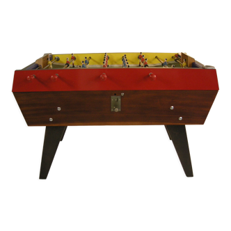 Table football b60 brand bonzini from 1961 (n°2410). Original parts. It has been completely restored. Very good general condition, the bars slide well, coin present. Robustness and exceptional qualities. Dimensions: 1.50 m X 1.00 m X 0.95. Weight: 90 kg (removable feet) telescopic exterior bars in hard chromed rectified steel with internal shock absorber, unalterable, interchangeable. Inner bars: in special polished rectified steel. Furniture: beech multiplied 1st choice, polyurethane varnish, washable, carpentry assembly lined by mechanical elements providing resistance to all tests, plastic railings, polished alpax goal. Players cast aluminum. Pads: made of polyamide, very resistant to wear, interchangeable. Maintenance: light lubrication of the inner bars with a few drops of petroleum jelly oil if necessary. Key words: table football, collectible, old, vintage, retro, pinball, terminal, arcade, bistro, game, café, jukebox.