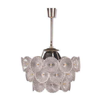 Lustre VISTOSI made up of 16 blown glass discs from Murano in orange (1 disc chipped and 1 disc repaired - See photo).