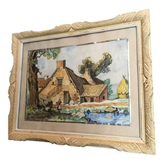 Sandstone vase painted by Maryline Froissant. Very nice general condition.