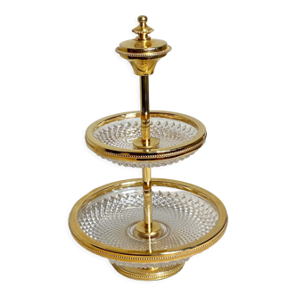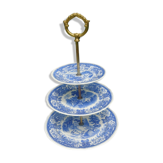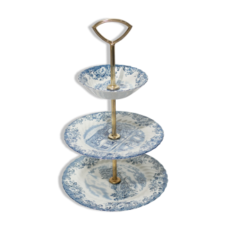 Lunéville Badonviller France tiered serving platter in brown ceramic. Tier widths: 17 and 13.5 cm. Total height: 22.5 cm. Weight: 420 g.