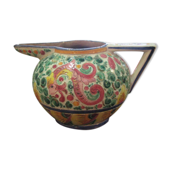 A beautiful, hand-painted Spanish ceramic decorative pitcher by Del Mazo. It features a landscape with stylized trees and a bird, in soft, harmonious colors, dominated by turquoise. In excellent condition. Carefully shipped.