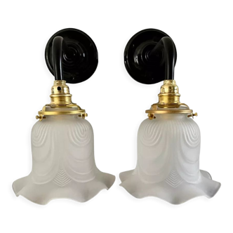 Table lamp made from an antique glass tulip and completely new electrical components. Base diameter 13 cm, height 12 cm. Choice of cord, either glittery mustard round or twisted linen of 2.20 m, E14 brass socket, and transparent plug and switch. Please note: these are genuine antique globes that may show slight signs of age, which are always discreet and add to the charm of the old. Shipping is done via Colissimo or Mondial Relay, perfectly protected and in recycled cardboard packaging.