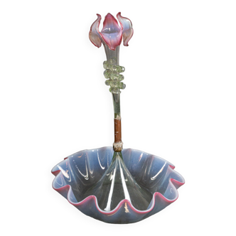 Glass ashtray with a central palm tree shape and a circular base.