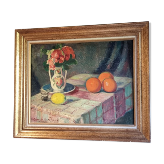 Large oil on canvas from the studio of the artist Obodjan. This work has been cleaned and restored. This interior scene and its vibrant color palette evokes the Fauvist works of Matisse from the 1930s.