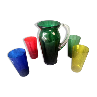 Very thick glass table pitcher. Bright green color and almost black in some places depending on the thickness of the glass. Impeccable condition. Diameter 12 cm. * for any bulk order or shipment outside france, ask for a quote * quick and neat shipping.