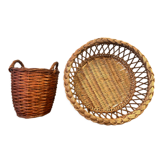 Wicker sun dish, centerpiece or fruit cup, 70s. 34 cm in diameter. 4 cm high. Excellent condition.