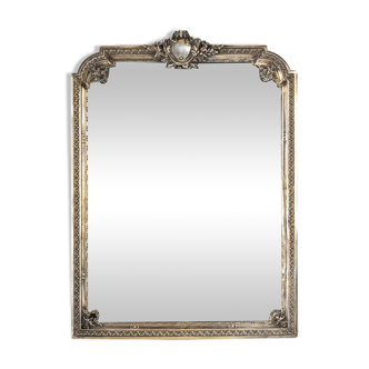 Old gilded frame wooden base, stucco moldings. Beaded interior border. Some gaps, stable. Patinated golden tint. Clear glass window available external dimensions: 30.6 X 41.7 X 1.3 cm dimensions of the rebate: 27.8 X 39.3 cm dimensions at sight: 26.5 X 37.5 cm.