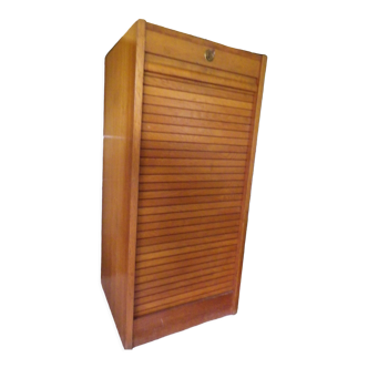 Oak veneer curtain binder, the bladed curtain works perfectly. Inside four removable shelves mounted on mugs. Equipped with a lock with its original key. Dimension h100 X l42 X p36.
