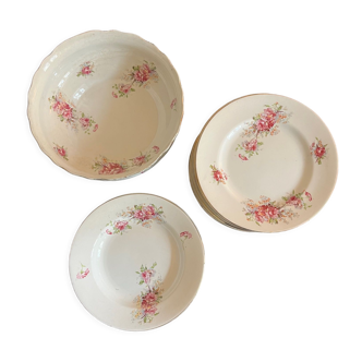 Set of 8 deep plates in the "Evreux" pattern from the Lunéville pottery. Their lovely floral decoration in burgundy red, navy blue, and blue-grey will give your table the authentic charm of family meals from yesteryear. Diameter: 23 cm. They are in excellent condition and show very few signs of use.