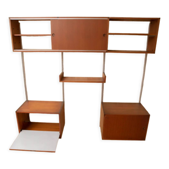 Practical and aesthetic this secretary desk in oak veneer repainted in taupe color. Pretty profile curves. Patinated metal shell handle. The opening/closing system works perfectly. Space-saving closed depth of 25cm. (open depth 75cm) Width 85cm. Height 152cm.