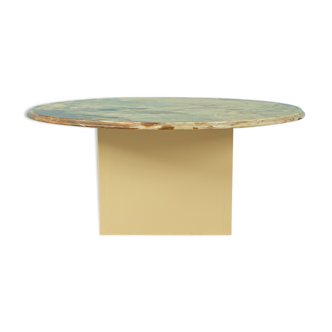 Table erwin nagel for rosenthal einrichtung 1980. Four panels that transform the round shaped table (140 cm in diameter) Square-shaped.