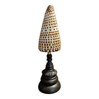SHELL ON BASE Melongena melongena (Linnaeus 1758) Unregulated species. Height of the shell: 11 cm. Total height: 21 cm. All our mounted objects are made from antique elements - They are all unique pieces and not made from new mass-produced bases. Good condition.