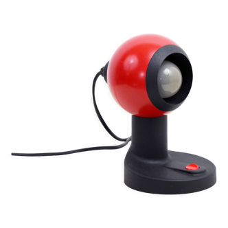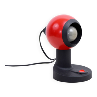 Paire de lampes à poser italiennes des années 70, modèle Sfera Notte édité par Gagiplast. Ces lampes illustrent parfaitement l’esthétique Space Age avec leur forme sphérique et leur design compact. Chaque lampe est dotée d’un abat-jour rotatif permettant de moduler la lumière selon l’ambiance souhaitée, entre éclairage direct et diffusion plus douce. L’ensemble se compose de deux variantes complémentaires: une version jaune avec diffuseur blanc et une version rouge avec partie translucide fumée. Ce contraste apporte du rythme et du caractère à l’ensemble. Fabriquées en plastique, matériau emblématique de cette période, elles s’intègrent facilement dans un intérieur vintage ou contemporain. État: bon état vintage. Présence de légères rayures d’usage et de petites déformations des calottes dues à la chaleur des ampoules. Un interrupteur a été remplacé. Fonctionnement parfaitement assuré. Idéales en lampes de chevet ou en éclairage d’appoint décoratif.