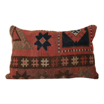 This traditional kilim cushion cover has been handwoven with hand-spun wool using the traditional kilim, flat-weave technique. This fantastic piece features a geometric zig-zag tribal design woven in deep red, mustard, grey and black. The kilim design is subtle but eye-catching. Decorate your bed, sofa or armchair with this fantastic piece as a scatter cushion. Mix and match with our huge range of unique handmade cushions. Perfect for adding a pop of colour and texture to any room. An easy way to make a dull space feel cosy. This piece is in great condition, ready for use in any home. Cu141.