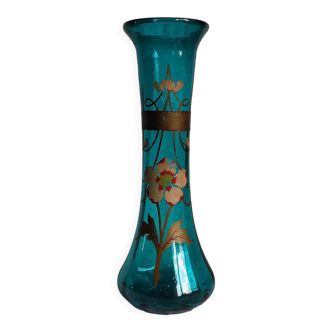 Vase sold in 19th century shops Louvre shop Paris. Legras & Cie. Montjoie, Verrerie de Saint Denis. France, circa 1880 / 1900. LEGRAS François-Théodore (1839-1916) hand-painted Art Nouveau vase. Glass and enamel. Dimensions: 24 cm (height); 10 cm (largest diameter).