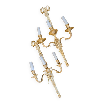 Antique Pair of Gilded Bronze Wall Lights Empire Louis XVI Acanthus Leaf 19th Century