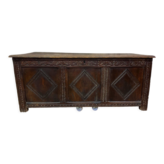 Jesuit-style chest dated 1790. Chiselled, in oak. H 71, W 123, D 60.