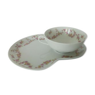 Set of 2 antique cups (1960s), in fine Winterling Marktleuthen Bavaria porcelain. With stylized green, orange, and gold floral decoration. In very good condition (no cracks or chips). Height 3.5 cm, rim diameter 7.5 cm. Saucer diameter 11 cm. 4 additional saucers included.