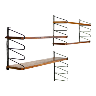 Beautiful timeless mid century vintage wall system by poul cadovius from the 1960s. View the photos for all details! This compact wall system can be arranged completely at your own discretion. This system is in a bonkonko veneer oak veneer edition. This version is not often offered. Layout: • 3 shelves 20 cm deep. • 1 wall slats of 50 cm length and 2 wall slats of 70 cm length. This poul cadovius wall system is in a beautiful vintage condition, with minimal traces of use. The wall battens are shortened at the bottom.