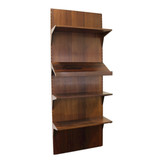 Coffee / side table by Waring & Gillow from the early 1930s, designed in the Art Deco style. The solid wood construction makes the piece surprisingly heavy for its compact size. It is finished in walnut veneer with a beautiful, distinctive grain, while the top is covered in burr walnut with a satin finish. The form is based on a geometric, modernist structure with characteristic rounded edges. The warmth of the wood contrasts with glossy black-and-white lines that emphasize the architectural character of the piece and give it a surprisingly modern expression. The two-level construction — four shelves arranged alternately at two heights — provides practical and well-thought-out functionality. This table is not only practical but also a striking element for interiors in vintage, Art Deco, modernist, or eclectic styles.