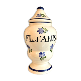 White earthenware pot from charolles. Inscription "olives" typography stencil effect. Hallmark below. Cork. Good condition, note shine underneath (see photos) height 11 cm - diameter 11.5 cm.