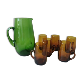 Lot including a decanter and 6 glasses, in midnight blue glass. (there are only 5 glasses in the photo, but I have 6, found after...) Carafe approx. 21 cm, glass height 12 cm. Very good condition.
