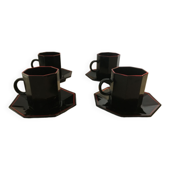 The set of five mugs was made in the 1980s in Italy. A set of five large ceramic mugs in a vibrant red colour, with yellow saucers, made in Italy in the 1980s. The original design and contrasting colours give the set a distinctive, retro look typical of Italian vintage design. Condition: Items are in their original condition; may have minor scratches and normal signs of wear. Dimensions: Mug: 10 X 9.5 cm. Saucer: 17 cm.