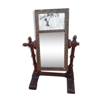 Small Double-Sided Bedroom Mirror, 19th Century. One side with a charming scene, the other with a beveled mirror. Concealed mirror, Napoleon III period. Height 38 cm. Width 32 cm. Depth 5 cm.
